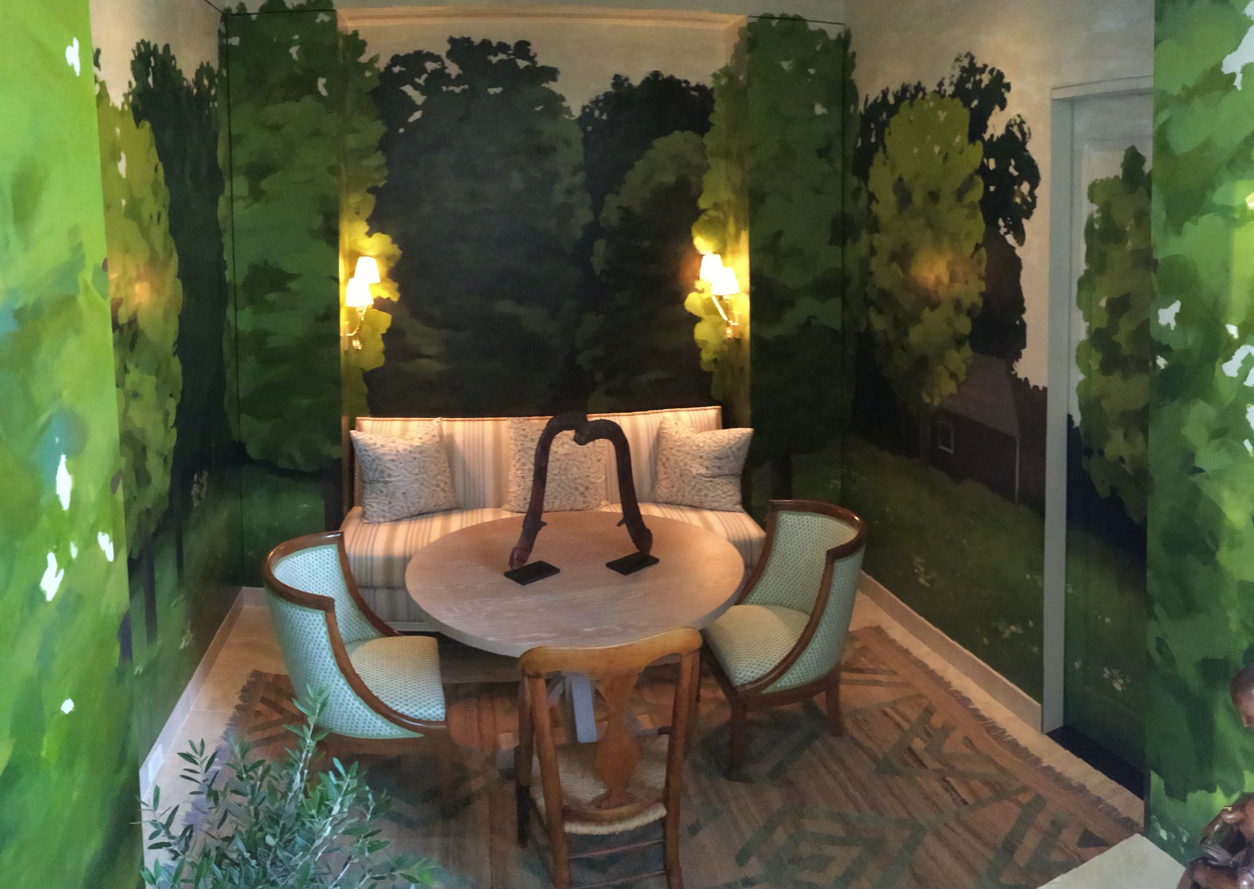 - The mural was designed to move continuously around the room so architectural elements became part of the landscape rather than interruptions.