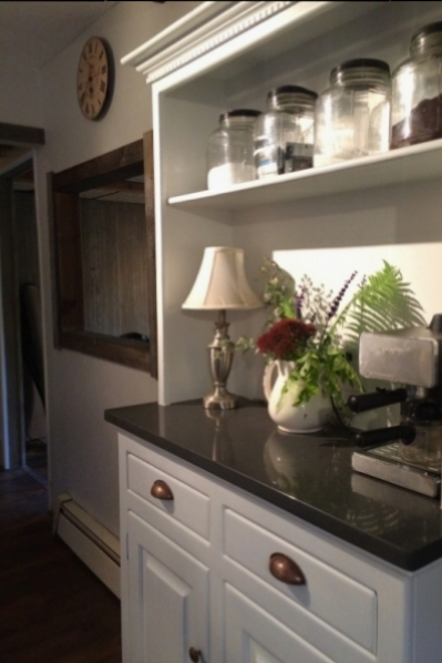 Repurposing an old step-back cabinet and reworking it into a functional coffee station